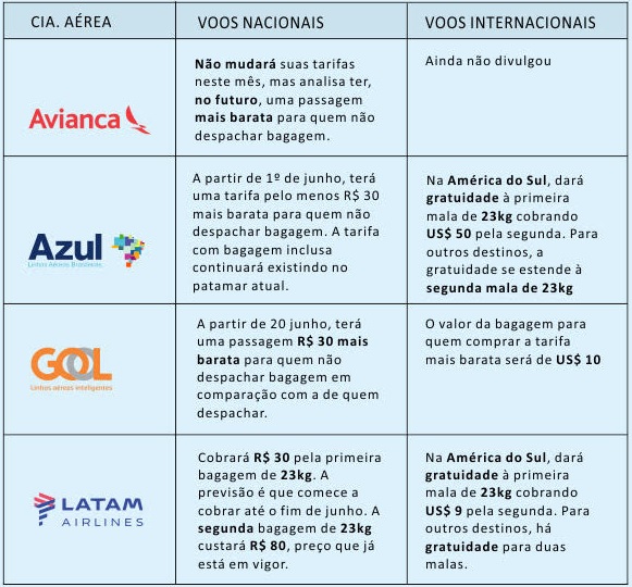 Fim da franquia de despacho de bagagem